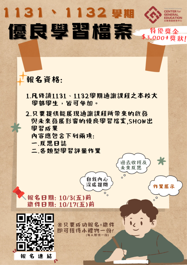 【優良學習檔案】1131、1132通識課程學生優良學習檔案遴選徵件,開跑了!!(徵件日期:至114/10/17)